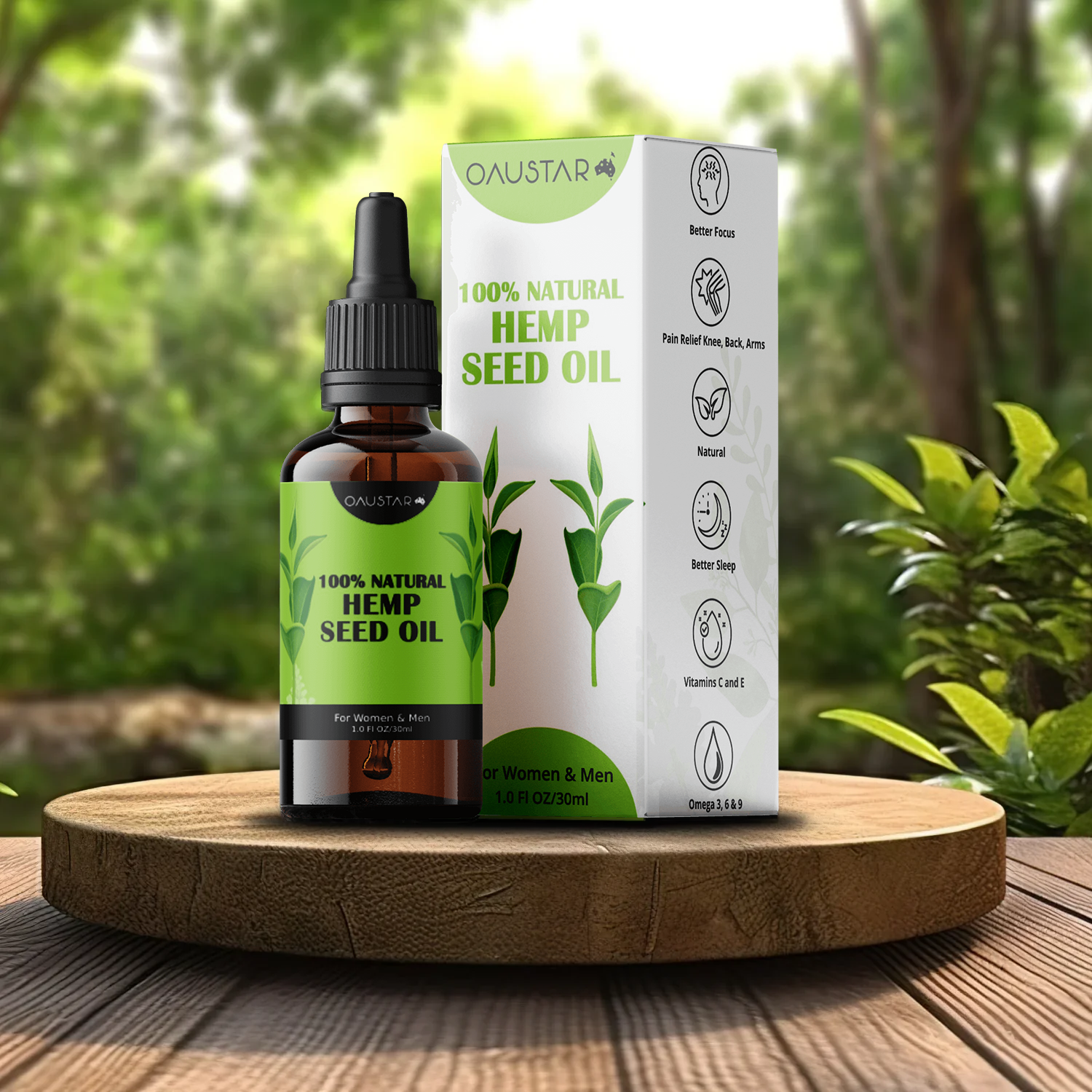OAUSTAR Hemp Seed Oil provides a natural approach to enhancing overall wellness, from reducing anxiety and promoting restful sleep to relieving various types of pain, including muscle, joint, and menstrual cramps.